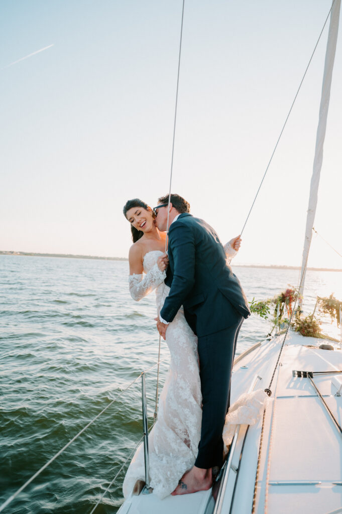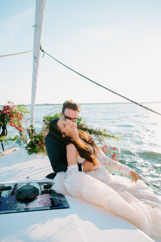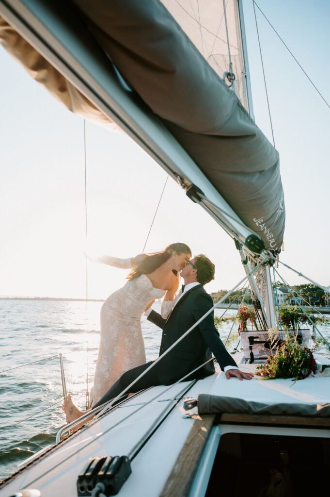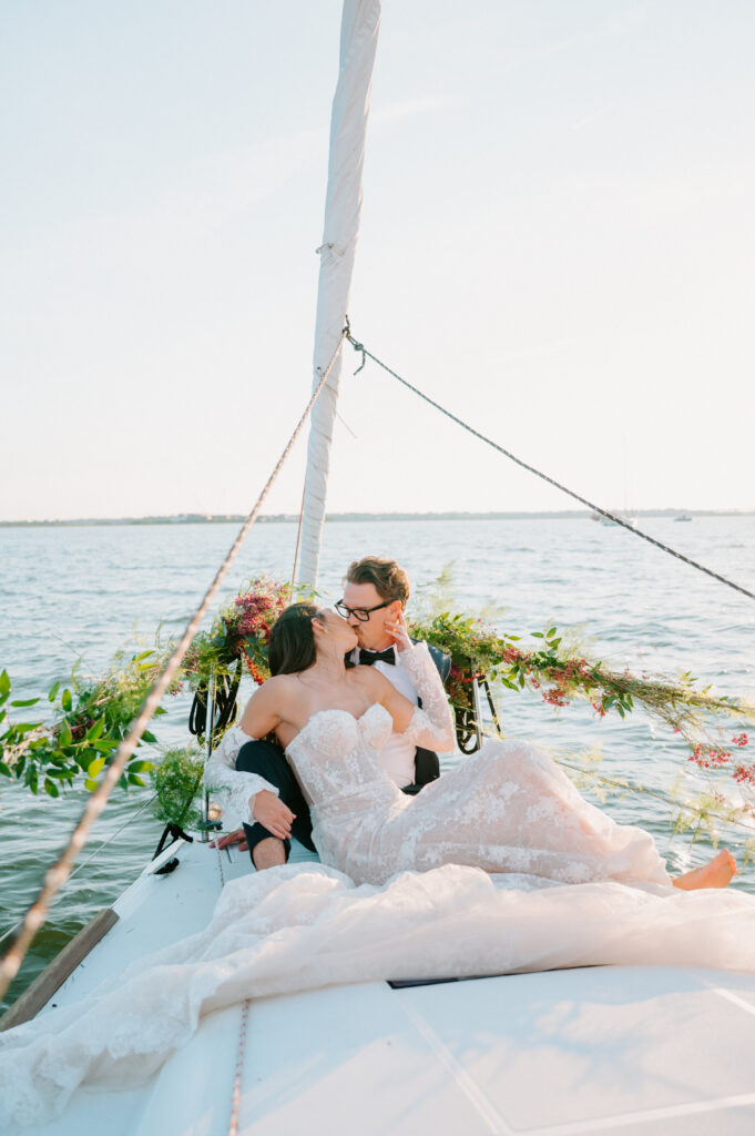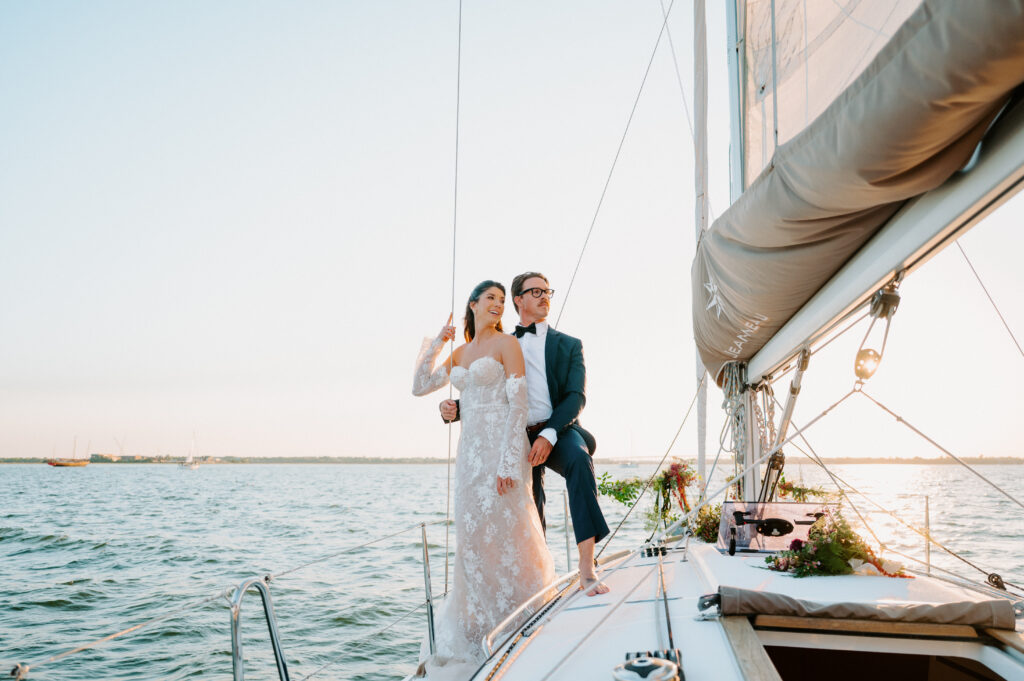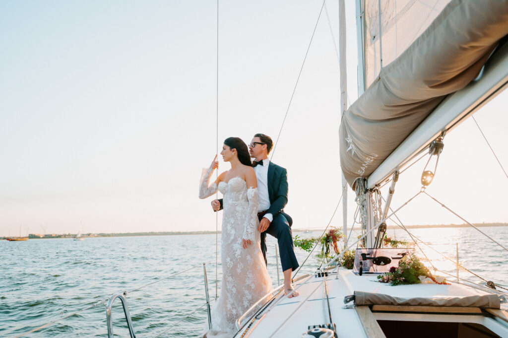 Water, sunlight, and Charleston’s skyline create magical photography opportunities. A photographer experienced with sailboat elopements can capture both sweeping scenic shots and intimate moments. Plan for hair and makeup that can withstand wind, and make sure to include shots of the boat, waves, and Charleston landmarks in the background.