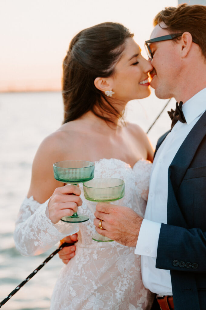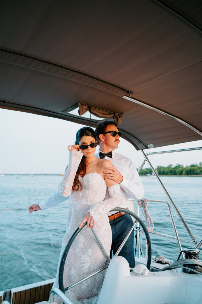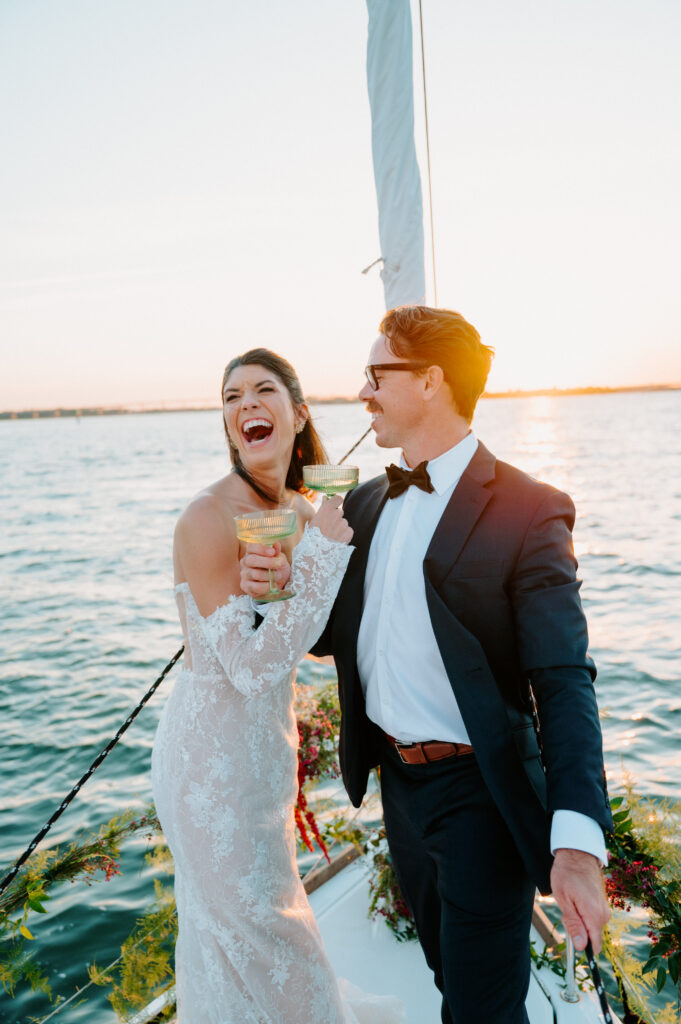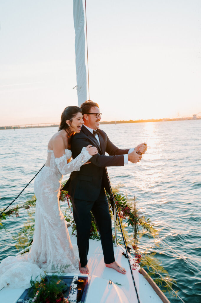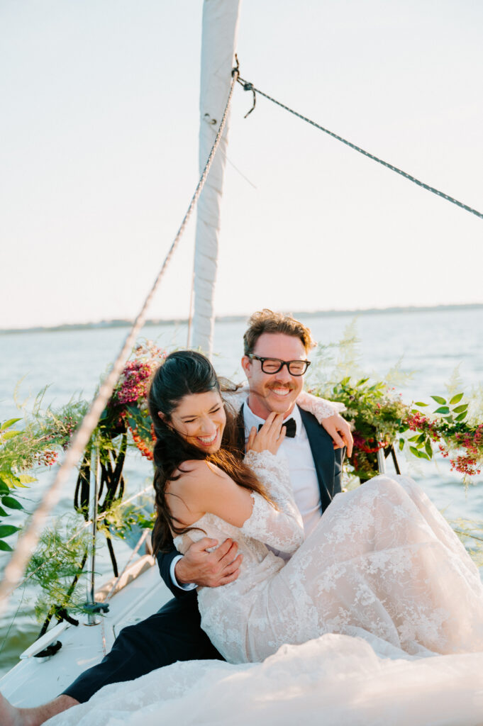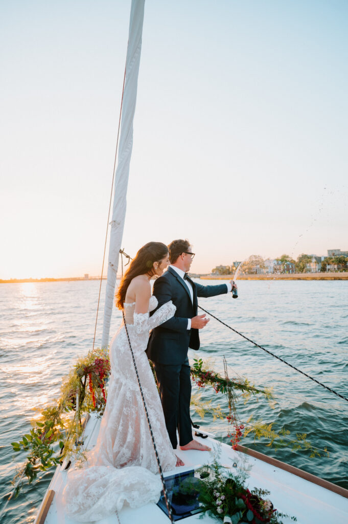 Water, sunlight, and Charleston’s skyline create magical photography opportunities. A photographer experienced with sailboat elopements can capture both sweeping scenic shots and intimate moments. Plan for hair and makeup that can withstand wind, and make sure to include shots of the boat, waves, and Charleston landmarks in the background.